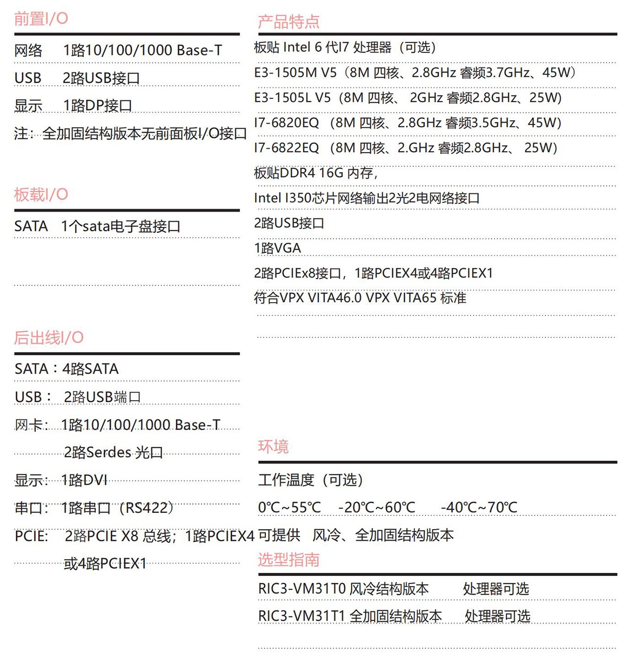 板貼第六代Intel Core I7處理器,Intel CM236芯片組, 表貼16GB DDR4 內(nèi)存;具備高性能、高可用性、具備豐富的外圍接口; 3uVPX規(guī)格設(shè)計了高效的散熱系統(tǒng),可顯著提高處理器的浮點運算 性能,以太網(wǎng),PCIe擴(kuò)展總線滿足視頻采集與處理、雷達(dá)和聲吶等應(yīng) 用對高速數(shù)據(jù)傳輸?shù)囊?。專為惡劣環(huán)境使用而設(shè)計支持寬溫工作。