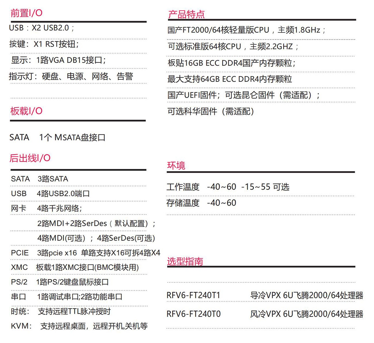 采用國產(chǎn)飛騰處理器遵從 VITA65 規(guī)范支持貼裝不同規(guī)格 FT2000/64 CPU 最大支持64GB ECC DDR4內(nèi)存4路千兆 以太網(wǎng)絡(luò)支持TTL脈沖時(shí)統(tǒng)。具備豐富的外圍接口;設(shè)計(jì)了 高效的散熱系統(tǒng),可顯著提高處理器的浮點(diǎn)運(yùn)算性能,以 太網(wǎng)、PCIe、支持高帶寬數(shù)據(jù)傳輸,滿足視頻采集與處理、雷達(dá)和聲吶等應(yīng)用對(duì)高速數(shù)據(jù)傳輸?shù)囊?。滿足無人機(jī)、雷達(dá)、水面艦艇等軍工領(lǐng)域。
