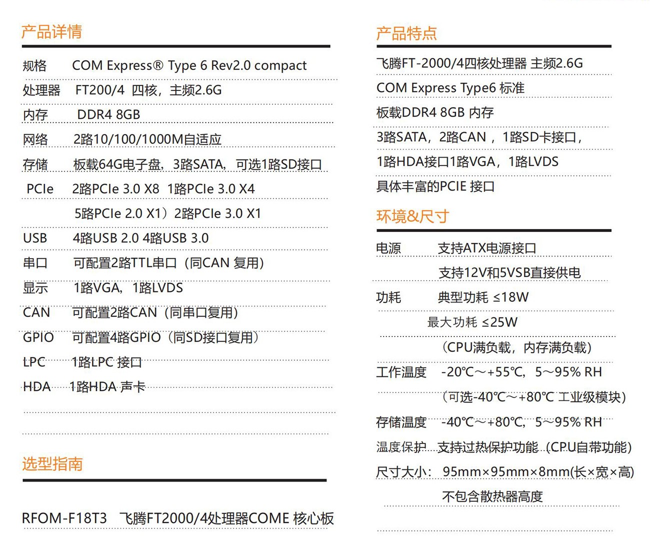 采用FT-2000/4高性能處理器設(shè)計 符合COM Express Type6 rev2.0 接口規(guī)范設(shè)計,板載DDR4 8GB 內(nèi)存, 64G工業(yè)固態(tài)電子盤,支持VGA和LVDS雙屏顯示輸出, 是一款國產(chǎn)自主可控集高性能,低功耗,高可靠性于一體的高集成度COME 核心板,可廣泛應(yīng)用于能源,軌交,國防,科研,通訊等領(lǐng)域。